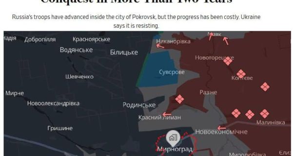 За даними журналістів, падіння Покровська може стати найсерйознішою поразкою для України з часів боїв за Бахмут і поставити під загрозу сусідній Мирноград.