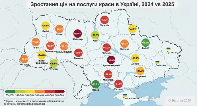 Фахівці проаналізували 260 тисяч прайс-позицій від салонів краси та приватних майстрів у 22 обласних центрах країни за період з осені 2024 по осінь 2025 років.