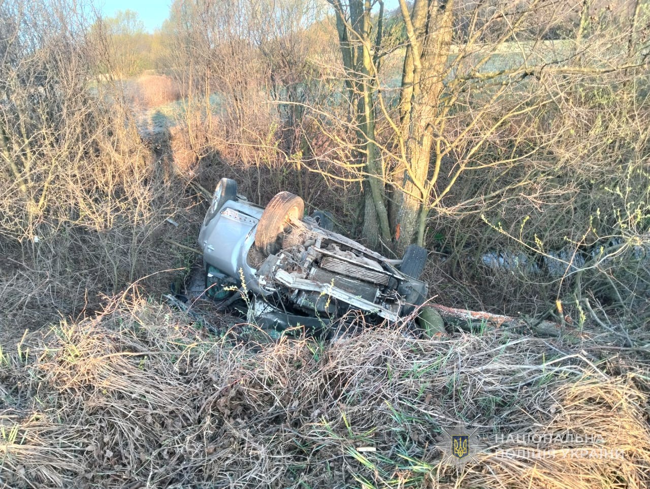 Водій Renault Megane не впорався з керуванням, з’їхав у кювет і врізався в дерево, після чого автомобіль перекинувся.
