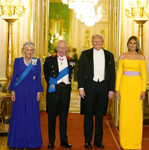 У Віндзорському замку відбувся урочистий державний банкет у межах візиту президента США Дональда Трампа до Великої Британії. Захід зібрав ключових представників британської монархії – короля Чарльза III, принца Вільяма та принцесу Уельську Кетрін. Та головну увагу привернули образи королеви Камілли та першої леді США Меланії Трамп