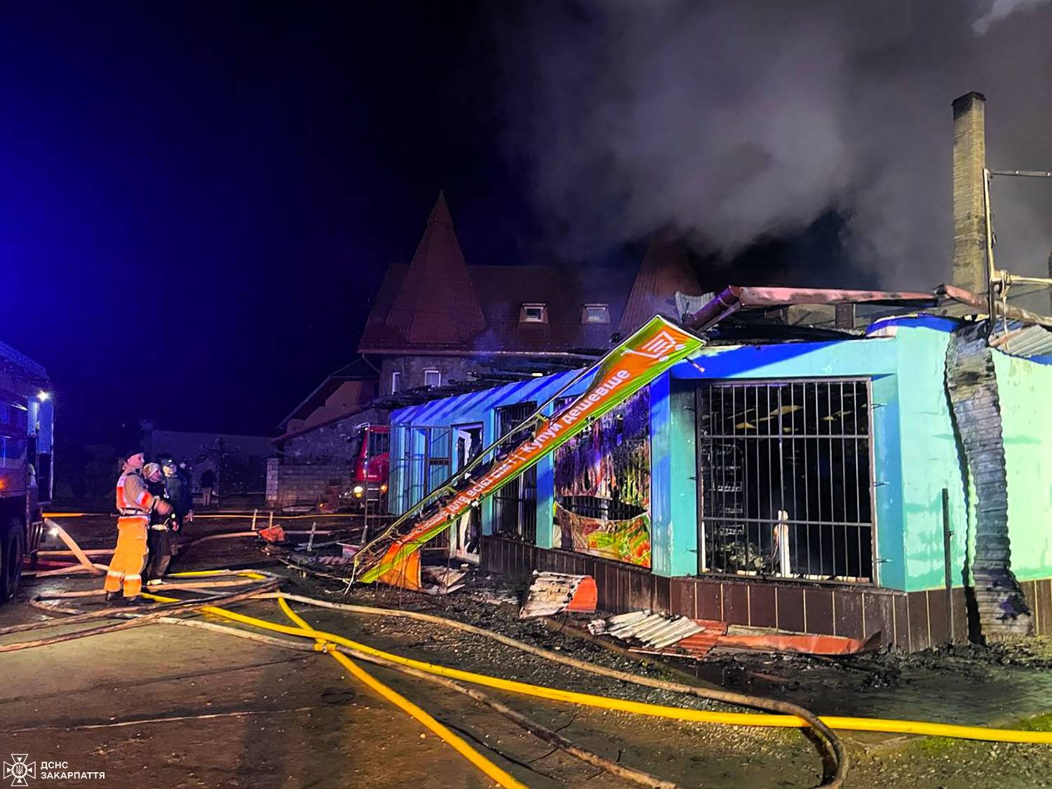 Масштабна пожежа на Закарпатті: згорів двоповерховий магазин