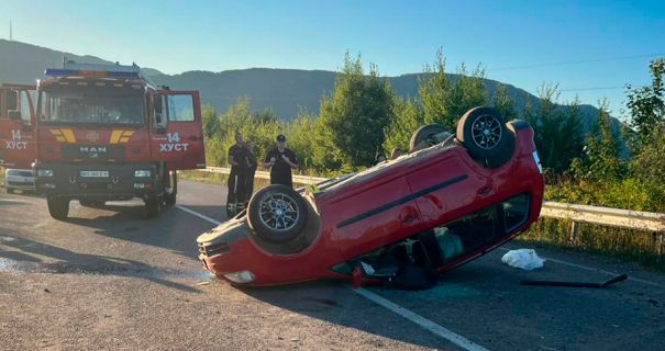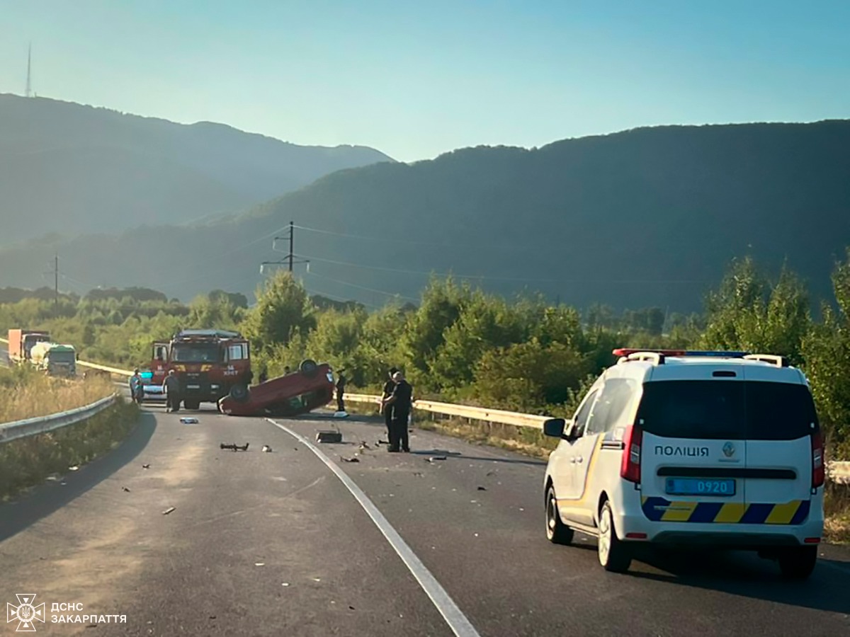 ДТП на Закарпатті: Mercedes влетів у відбійник, а Volkswagen перекинувся