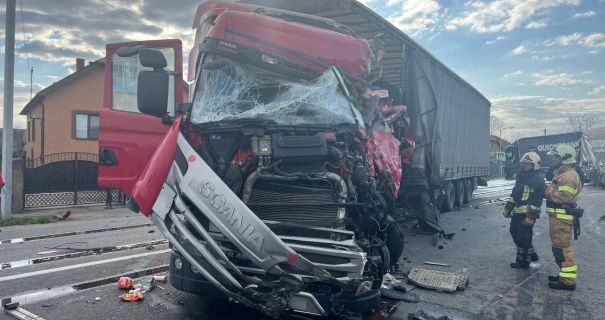 Водій вантажівки SCANIA виїхав на зустрічну смугу та врізався у вантажівку Mercedes.