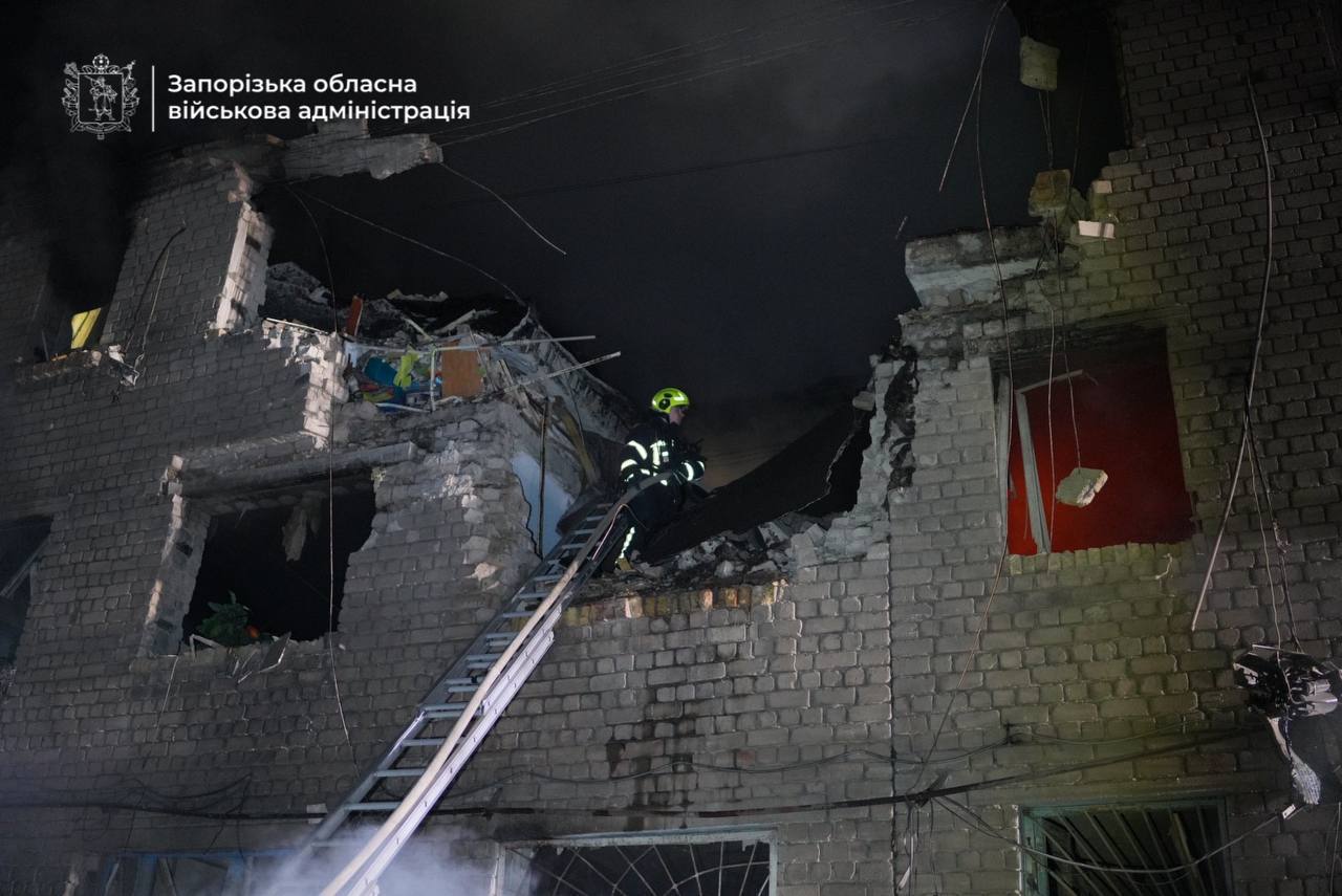У Запоріжжі продовжується рятувальна операція після атаки росіян. В ОВА показали фото наслідків обстрілу