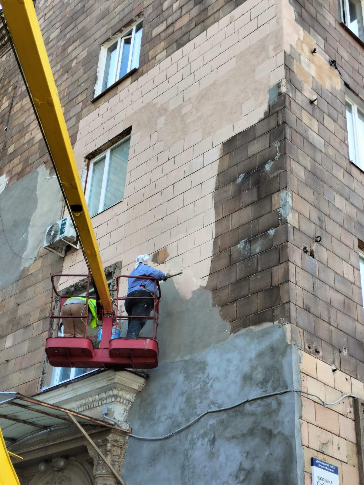 Спроба покращити вигляд зруйнованого обстрілами будинку №234 на проспекті Соборному у Запоріжжі завершилась скандалом: після "реставрації" від комунальників міські фахівці з охорони культурної спадщини заявили про руйнування автентичного вигляду фасаду