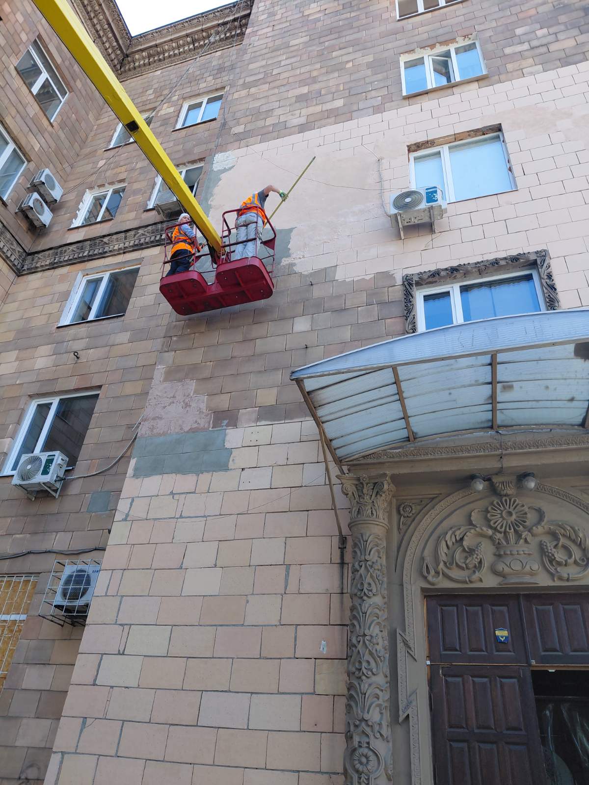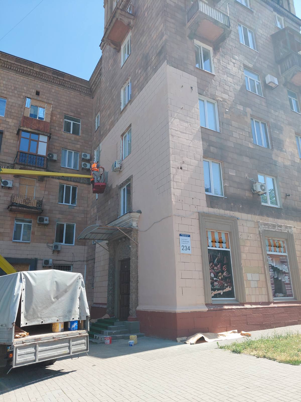 КП "Запоріжремсервіс" вирішило втрутитися — вирівняли поверхню, поновили шар штукатурки, пофарбували понад 70 м² фасаду. Комунальники прозвітували, що "споруда набула значно привабливішого вигляду".