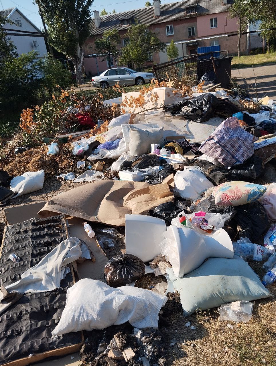 Жителі міста скаржаться на стихійне звалище, що утворилося по вулиці Богдана Хмельницького у мікрорайоні Азмол. За словами очевидців, окупанти не вивозять сміття вже більше місяця.