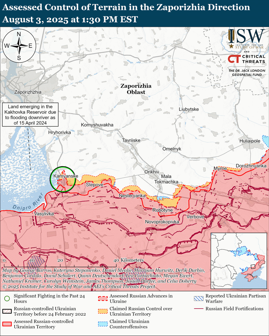 Аналізуючи ситуацію на сході Запорізької області, аналітики зазначають, що в неділю, 3 серпня, російські війська продовжили наступ, але без успіху.