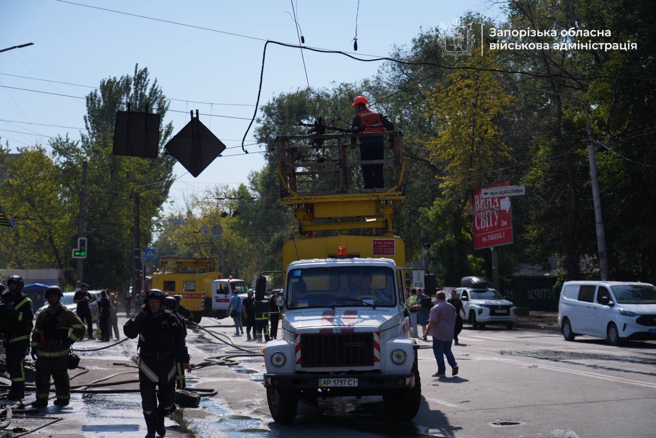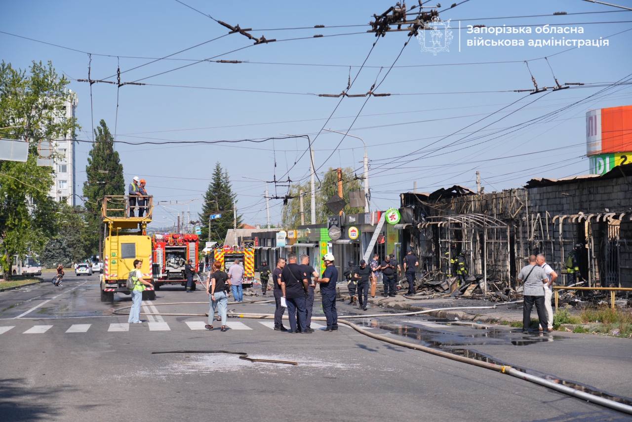 В ОВА показали наслідки удару по Запоріжжю: горіли магазини та зупинка, пошкоджені будинки