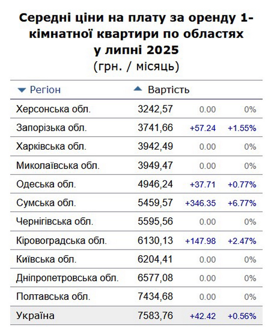 Нагадаємо, за даними Держстату, середня плата за місячну оренду однокімнатної квартири в Україні в червні 2025 року становила 7 504 гривень. З початку року ціни зросли на 4,5%. При цьому загальна інфляція досягла 6,5%.