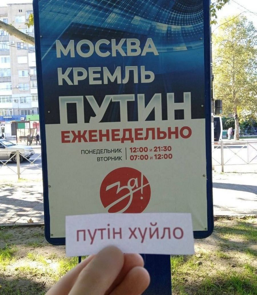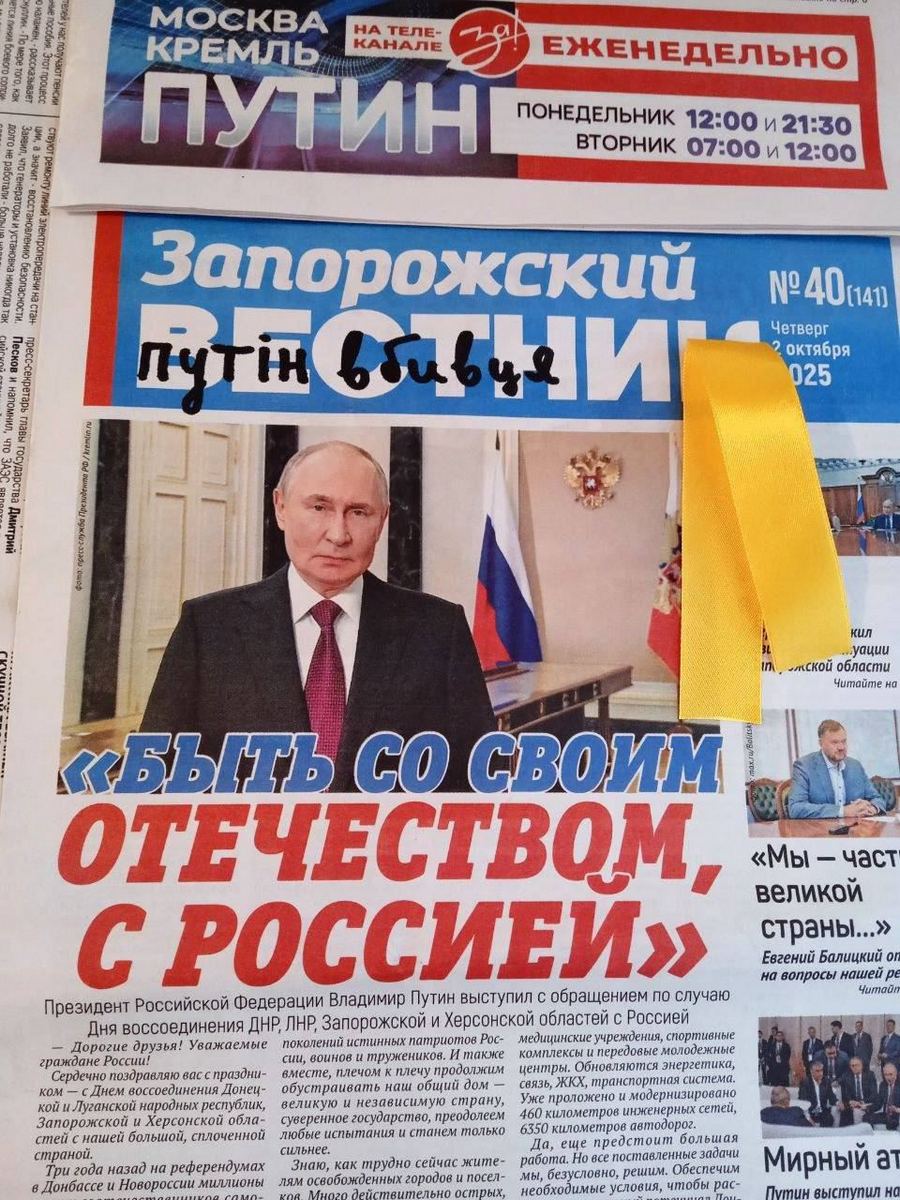 7 жовтня — день народження диктатора Путіна. Жителі окупованих населених пунктах на Запоріжжі вирішили нагадати йому, як до нього ставляться