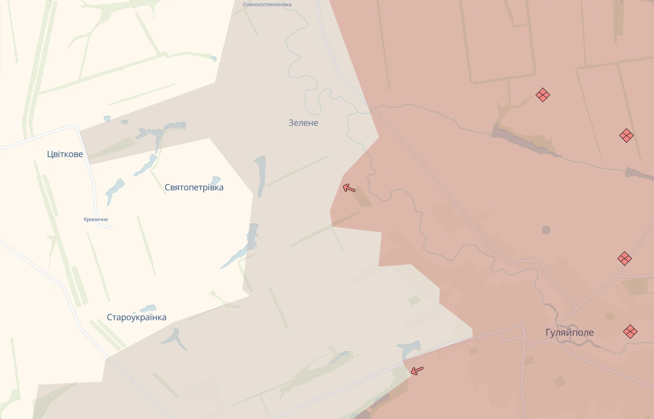 "Ворог просунувся поблизу Зеленого (Пологівський район, Запорізька область) та у Гуляйполі (Пологівський район, Запорізька область)", – йдеться у повідомленні.