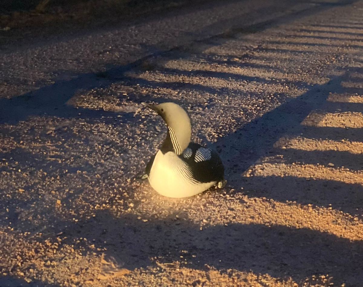 Гагара – рід водних птахів, які мають певні фізичні особливості, що не дозволяють цьому виду злітати з землі. Саме тому він самотужки й не зміг втекти з проїжджої частини. Напевно пташка впала під час перельоту або сплутала тверду поверхню з водоймою. Такі випадки з ними бувають під час сезонної міграції.