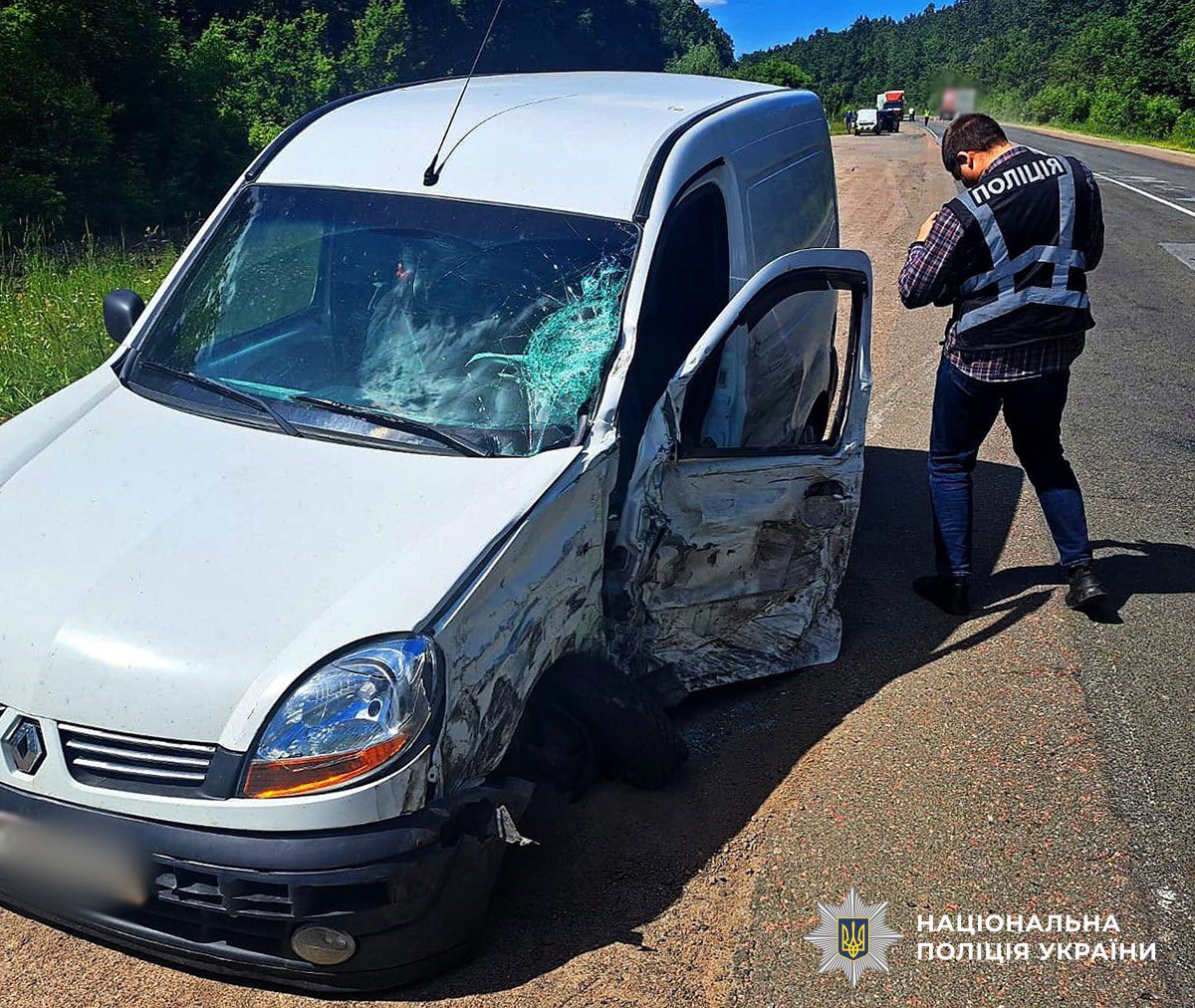 За попередньою інформацією, сталося зіткнення фургона Renault Kangoo, під керуванням 27-річного жителя Бердичева, із зустрічним Volkswagen Touareg, за кермом якого перебував 35-річний житель Київщини.