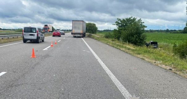Аварія сталась 19 липня на 114 кілометрі автодороги Київ – Чоп. Попередньо, 49-річний житель Хмельницької області, керуючи тягачем Мersedes Benz з напівпричепом, рухався зі сторони столиці у напрямку Житомира. Водій зіткнувся з автомобілем Renault Logan, за кермом якого був 62-річний киянин.
