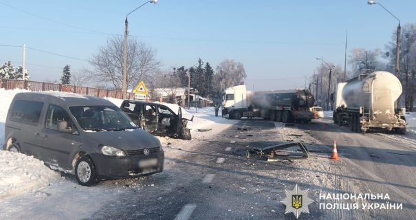 Попередньо, 24-річний водій DAF зіткнувся з Isuzu, за кермом якого був 40-річний чоловік. Останній а інерцією зіткнувся мінівеном Volkswagen. Внаслідок ДТП водія Isuzu госпіталізували з травмами. Правоохоронці з'ясовують обставини.