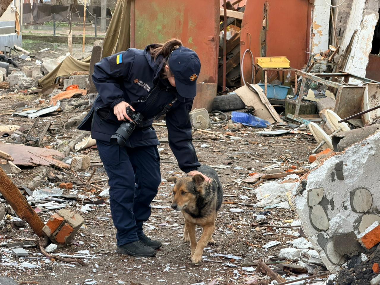 Собака плакала серед руїн свого дому: рятувальники показали сумні фото тварини після обстрілу на Житомирщині